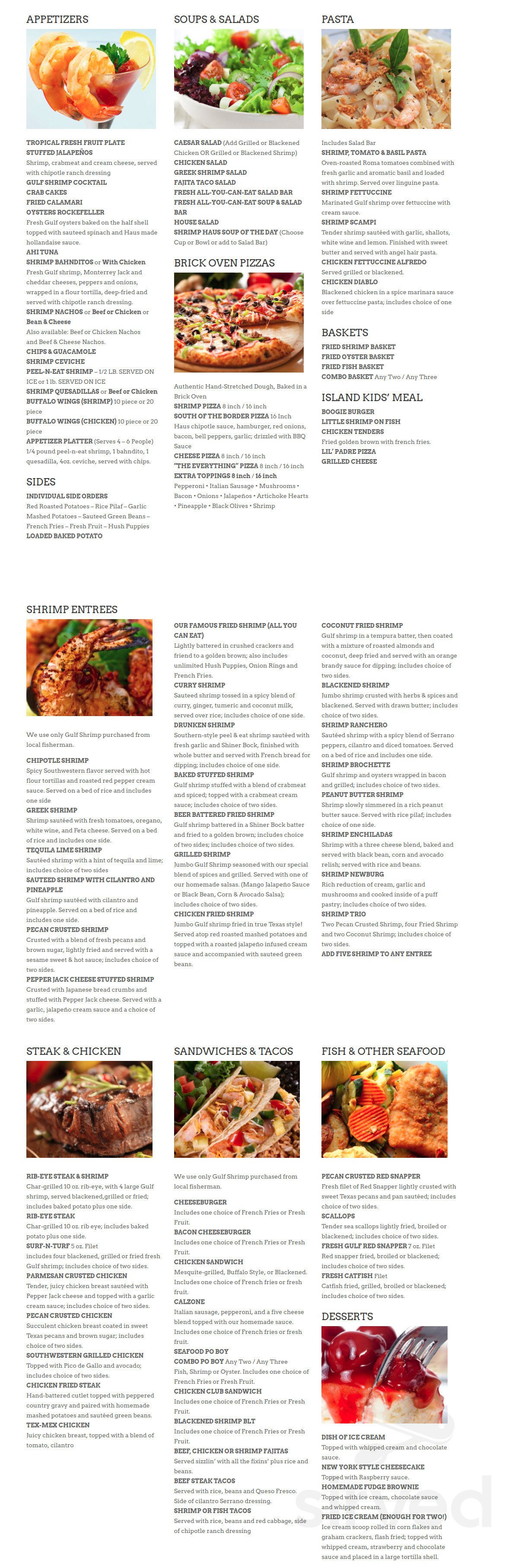 Shrimp Haus Menu In South Padre Island Texas Usa