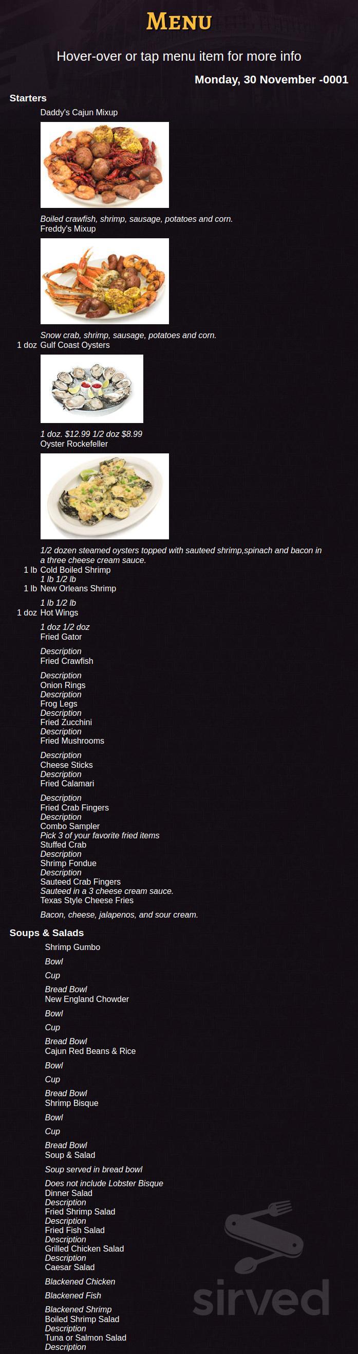 Daddy S Seafood Cajun Kitchen Menu In South Padre Island Texas Usa